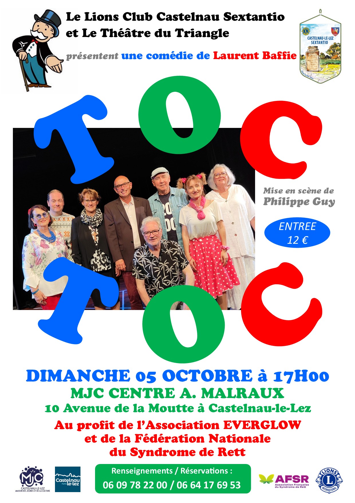 Accueil Evènements Spectacle TOC TOC de Laurent Baffie par Le Théâtre du Triangle Date Oct 05 2025 Expiré! Heure 17h00 - 18h30 Tarif 12.00€ TOC TOC de Laurent Baffie par Le Théâtre du Triangle Partagez cet événement + Ajouter à mon Agenda Google + iCal / Outlook export